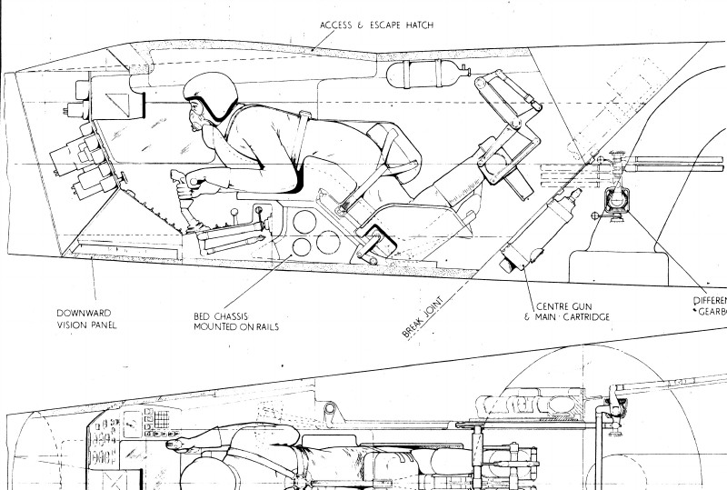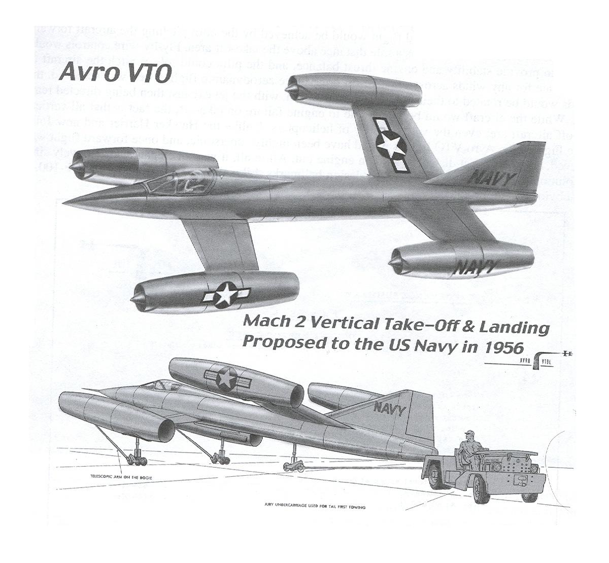 Specifications: Design concept only; two Bristol Orpheus turbojet engines and ten Rolls-Royce RB.108 VTOL lift engines; prone piloting position.